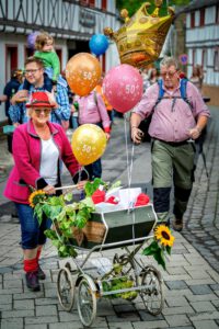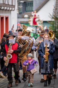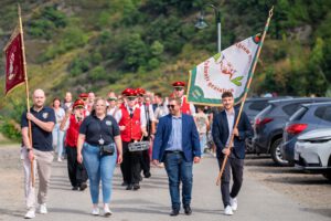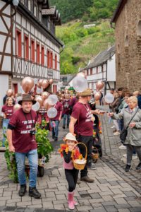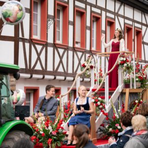 Das Highlight des Recher Winzerfestes bildet am Sonntagnachmittag der Festumzug zu ehren unserer neuen Weinmajestäten. Unsere Recher bilden spannende Gruppen, durch die sie Freude versprühen und den Zuschauern einen Probierschluck unserer Weine ausschenken. Die Musikkapellen bringen mit ihrer stimmungsvollen Musik die Straßen von Rech zum Beben.